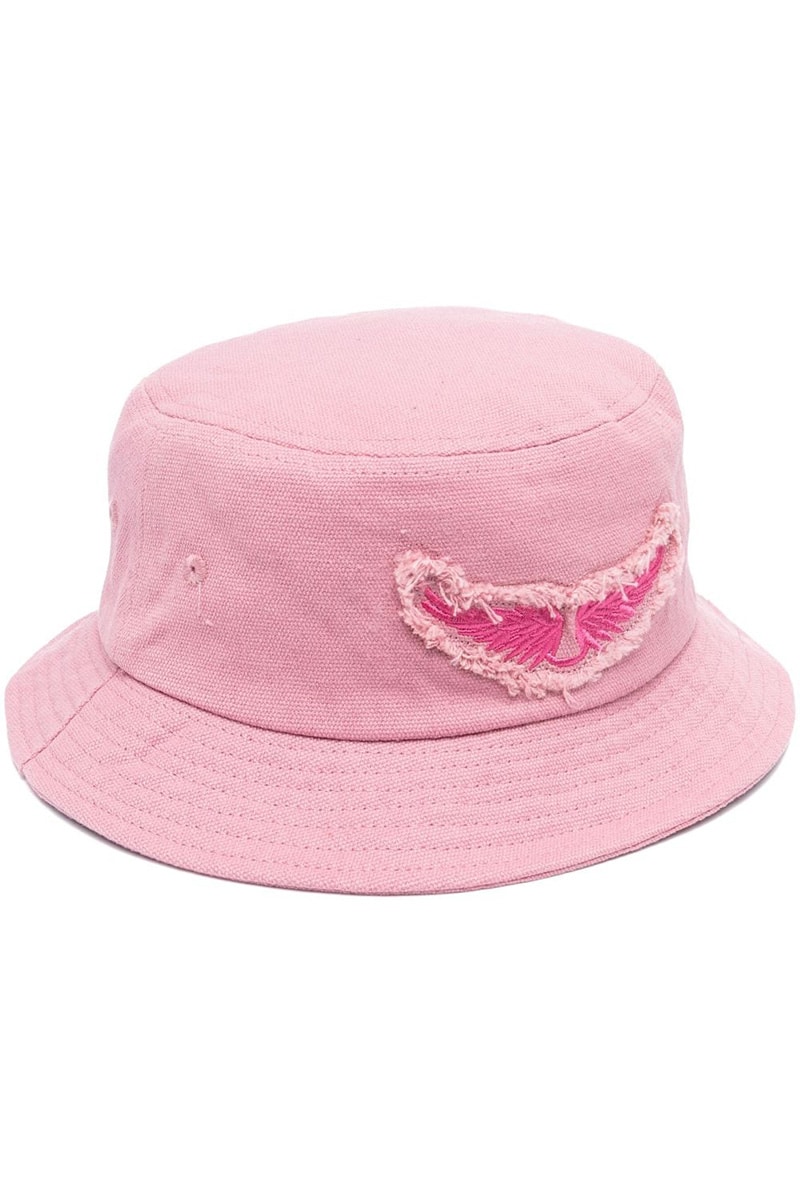 Pulverrosa, bomull, logolapp foran, brodert logo på baksiden, smal kant, ton-i-ton søm.