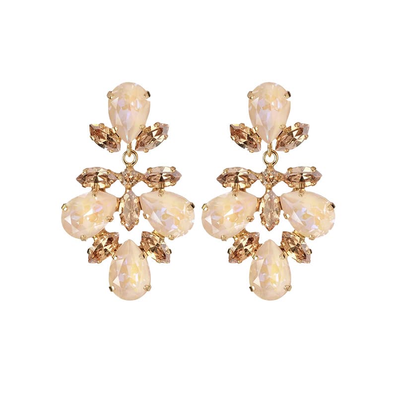 Selene øredobber med krystaller, laget av høyeste kvalitet, vil utfylle hverdagsantrekket ditt og sørge for at du glitrer i enhver anledning. Øredobbene er laget av 18K gullbelagt messing.