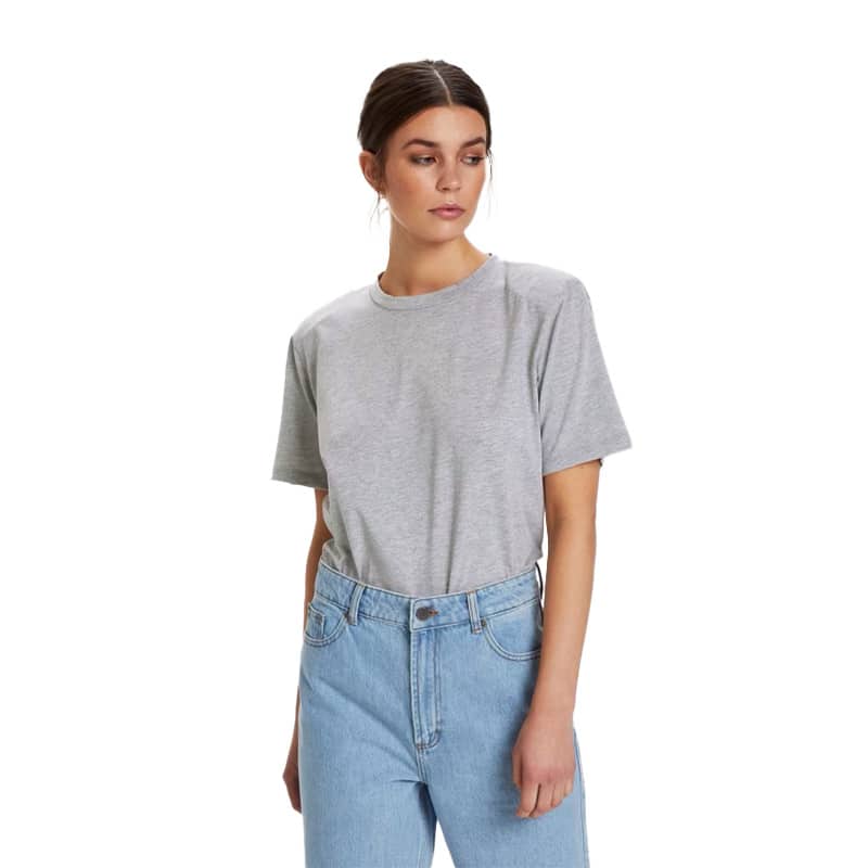 En klassisk basic T-skjorte laget i en jersey av økologisk bomull. T-skjorten har en normal passform, og den har avtagbare skulderputer, som lar deg endre silhuetten din. T-skjorten har korte ermer og er kuttet i hoftene.