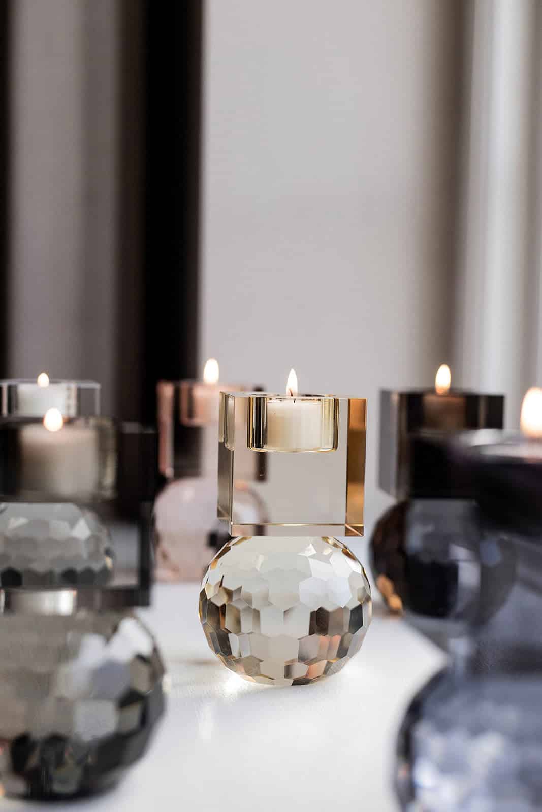 ‘Shadow T-Lights’ er en samling av luksuriøse og dekorative krystalllysestaker tilgjengelig i 8 unike farger. Det brede spekteret av fargevarianter sikrer et mylder av unike stylingalternativer.