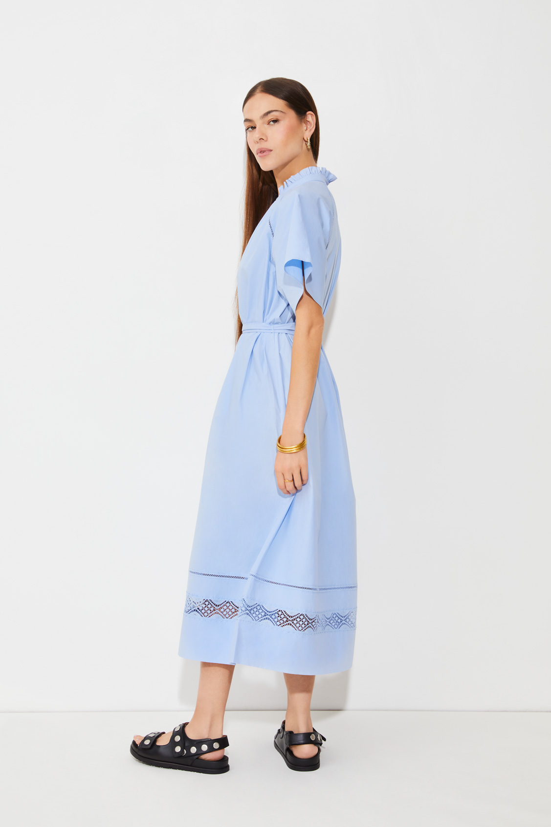 Denne full lengde kjolen med normal passform med volum ermer og et utsvingt, lagdelt skjørt trekkes i form i midjen
