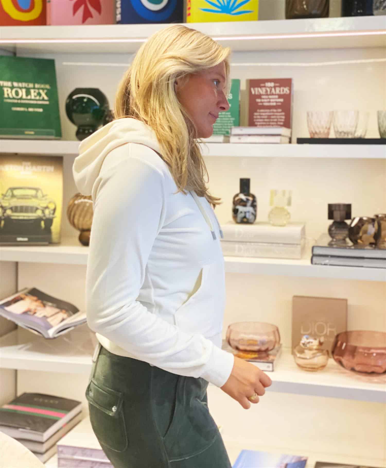 Robertson Classic Velour Zip Hoodie fra Juicy Couture. Deilig og myk velur hoodie. Jakken har glidelås, hette og strikk ved kant og ermer. Match den med Del Ray Classic Velour Pant Pocket for et komplett sett.