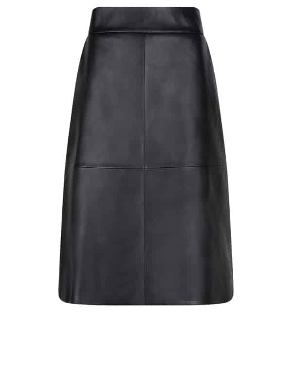 Laget av smørmykt lammeskinn fra et sertifisert garveri, har skjørtet et A-linjesnitt og synlige sømmer. Den moderne designen passer best sammen med andre nøytrale fargetoner. Prøv din med en komfortabel t-skjorte eller bluse og uformelle tøfler eller støvler.